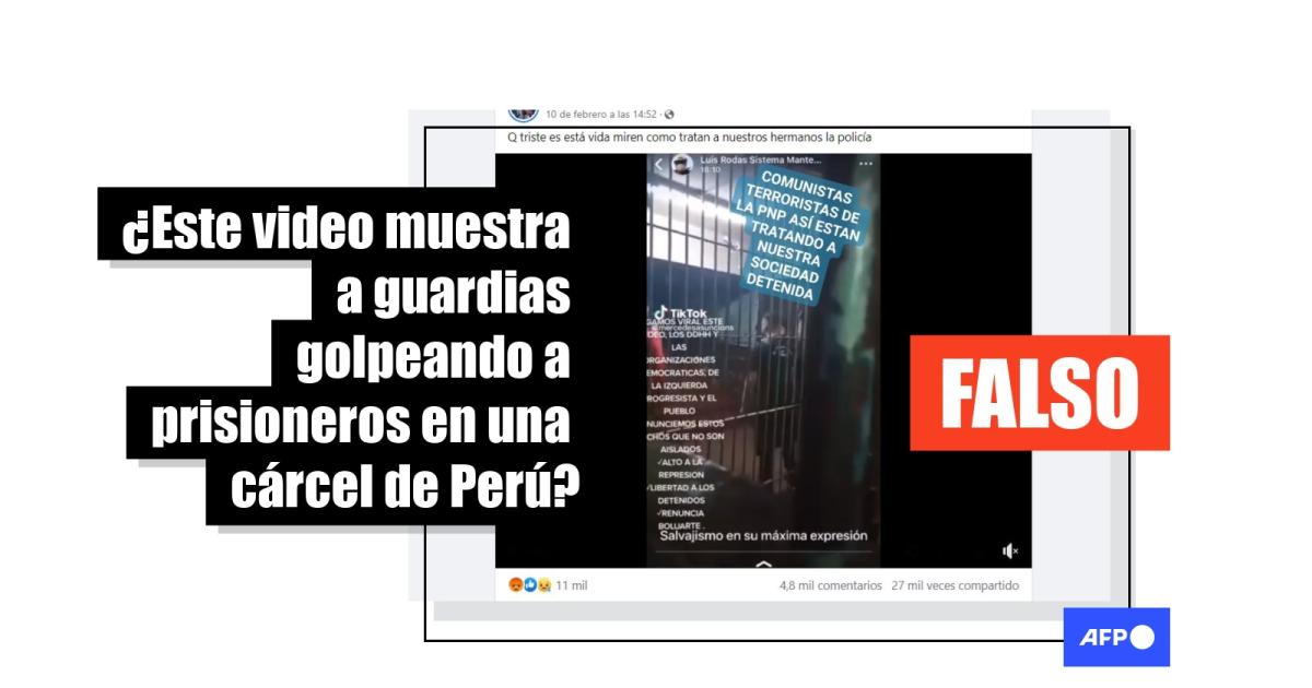 "Comunistas terroristas de la PNP [Policía Nacional del Perú] así están tratando a nuestra sociedad detenida", dice un texto sobrepuesto en un video compartido en Facebook (1, 2) y TikTok (1, 2).