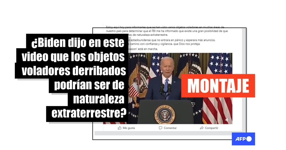 En la secuencia, Biden supuestamente declara en inglés: “Señoras y señores, como comandante de las fuerzas armadas de los Estados Unidos estoy aquí hoy para informarles que un número de objetos voladores no identificados han aparecido en muchas áreas de nuestro país (...) el FBI me ha informado que es muy probable que se trate de visitantes de naturaleza extraterrestre. Aconsejo al pueblo estadounidense que no entre en pánico y espere más anuncios. Afrontaremos esta amenaza con confianza y vigilancia, que Dios nos proteja”.