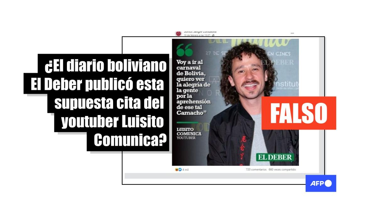 El diario boliviano El Deber no publicó esta cita del youtuber Luisito Comunica sobre Luis Camacho