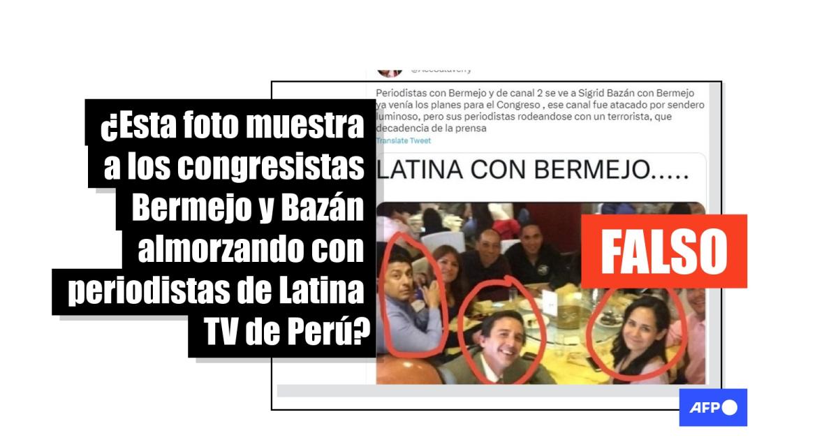 Foto de un almuerzo entre políticos peruanos de izquierda y periodistas de Latina TV es un montaje