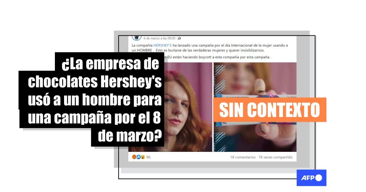 “La compañía HERSHEY’S ha lanzado una campaña por el día Internacional de la mujer usando a un HOMBRE . Esto es burlarse de las verdaderas mujeres y querer invisiblizarnos”, señalan las publicaciones difundidas en Facebook (1, 2, 3) y Twitter.