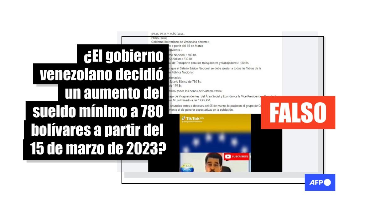 Mensajes similares en los que presuntamente se anuncia un aumento al salario mínimo en Venezuela han circulado en enero y febrero de 2023; la AFP ya ha verificado esa desinformación (1, 2).