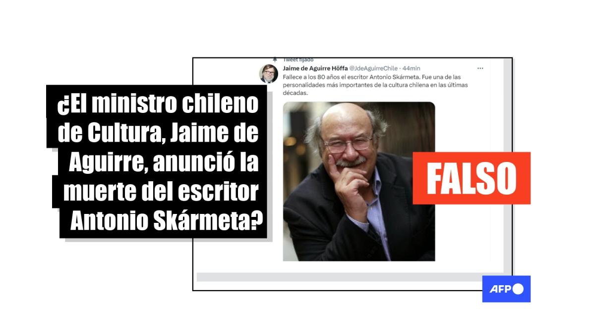 “Fallece a los 80 años el escritor Antonio Skármeta. Fue una de las personalidades más importantes de la cultura chilena en las últimas décadas” señalaba la publicación en Twitter con el supuesto anuncio del nuevo titular de la cartera cultural, Jaime de Aguirre.
