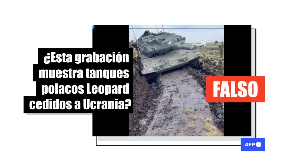 “Los primeros tanques Leopard enviados desde Polonia atascados en el barro ucraniano”, se lee en publicaciones que comparten el video en Facebook (1, 2), Twitter y Telegram.