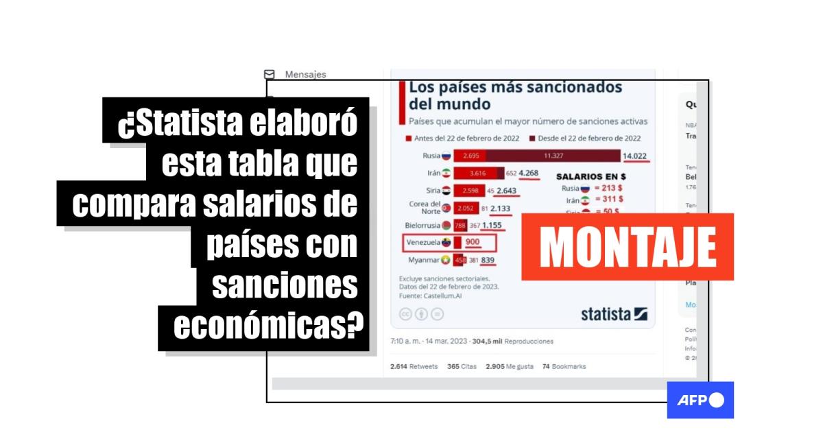 Al 27 de marzo de 2023, continúan las protestas en torno al monto del salario mínimo en Venezuela, que subió por última vez en febrero de 2022 a 130 bolívares (5,3 dólares a la tasa del Banco Central venezolano). En este contexto, una tabla atribuida al sitio web Statista con una lista de los países más sancionados del mundo y sus respectivos salarios ha sido compartida más de 2.500 veces en redes sociales. Sin embargo, la gráfica original fue modificada y sus valores son incorrectos. Además, economistas explicaron que no es factible hacer comparaciones entre países con contextos diferentes.