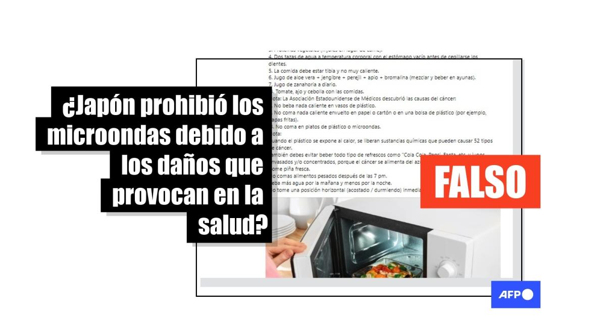 Una búsqueda en inglés en la cuenta de Twitter del gobierno nipón tampoco arrojó resultados sobre la prohibición de los hornos de microondas.