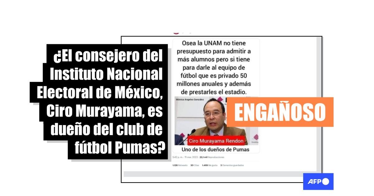 AFP Factual consultó al área de prensa del Club Universidad A.C., que aclaró: “Es imposible que haya una persona física que pueda ser dueña del club. Esa información de Ciro Murayama es incorrecta porque no se puede, hay una Junta Directiva y es la que administra al club. Los asociados tienen reuniones de asamblea y ahí se les presenta la administración y estados financieros [del equipo]”, detallaron.