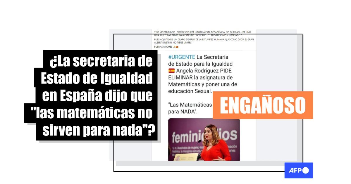 Una búsqueda inversa de la imagen que adjunta el tuit viral difundido en redes condujo a una publicación en Facebook de la secretaria de Igualdad fechada el 20 de diciembre de 2021, cuando presentó el Observatorio de Feminicidios, para evaluar con datos las violencias machistas en España. Durante su intervención tampoco se refirió a la necesidad de sustituir las matemáticas por una asignatura de educación sexual.
