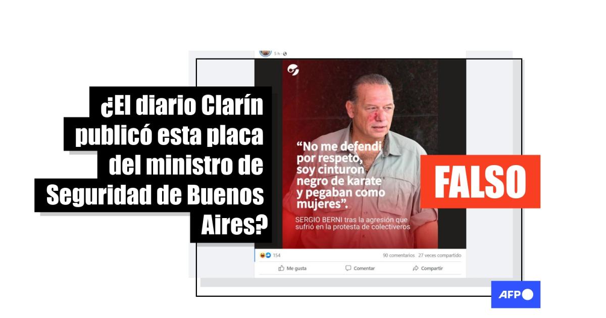 Desde el área de redes sociales de Clarín confirmaron a la AFP que el medio nunca publicó el contenido: “La placa es falsa”, señalaron.