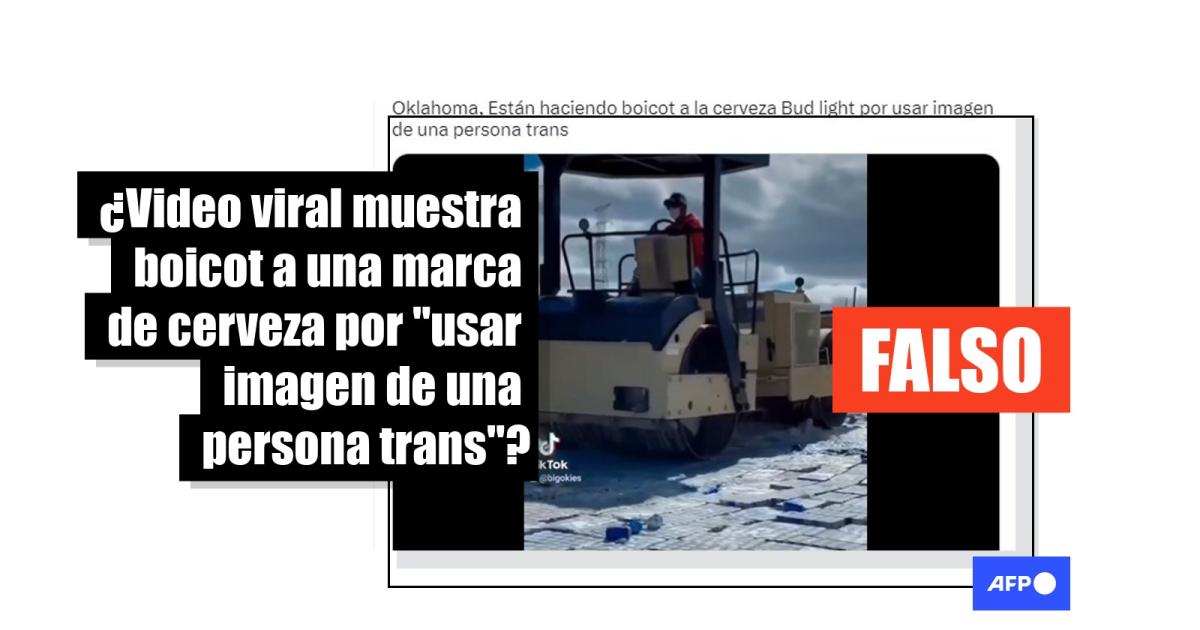 En febrero de 2023, se destruyeron decenas de miles de latas de cerveza que habían sido decomisadas en 2020 en Baja California, México. Desde abril, cientos de usuarios de redes sociales comparten un video del hecho con la afirmación de que muestra un boicot a la cerveza Bud Light en Oklahoma, por haber empleado a una influencer trans en una de sus campañas publicitarias. AFP Factual se puso en contacto con el autor de la grabación, quien desmintió esa versión y ofreció contexto sobre la medida que, además, fue cubierta por distintos medios de comunicación.