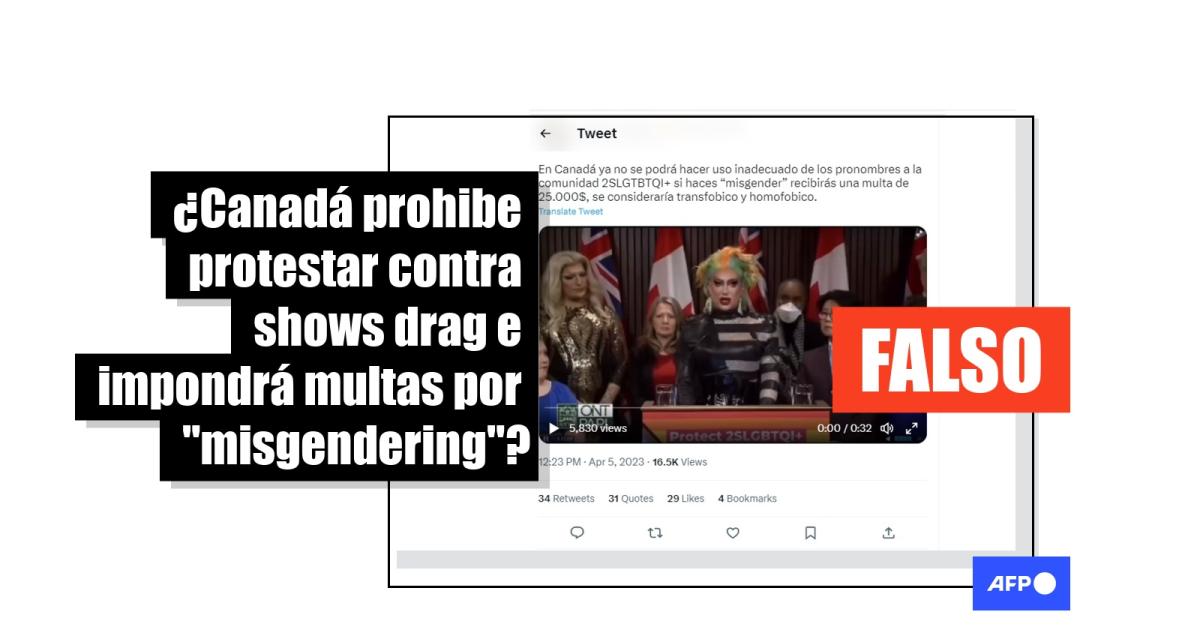 “En Canadá ya no se podrá hacer uso inadecuado de los pronombres a la comunidad LGTB+ si haces 'misgender' recibirás una multa de $25.000, se consideraría transfobico y homofobico.”, afirman publicaciones en Facebook y Twitter (1, 2, 3) compartidas decenas de veces.