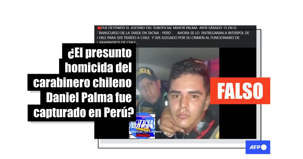 “FUE DETENIDO EL ASESINO DEL SUBOFICIAL MAYOR PALMA AYER SÁBADO 15 EN EL TRANSCURSO DE LA TARDE EN TACNA - PERÚ. AHORA SE LO ENTREGARAN A INTERPOL DE CHILE PARA SER TRAÍDO A CHILE Y SER JUZGADO POR SU CRIMEN AL FUNCIONARIO DE CARABINEROS DE CHILE”, señalan publicaciones replicadas en Facebook (1, 2).