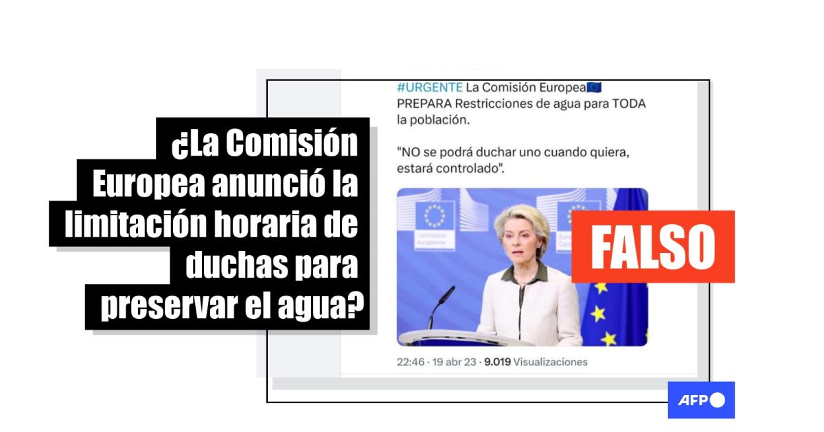 Consultadas por la AFP, fuentes de la Comisión Europea en España aseguraron que es “falso que la presidenta de la CE haya anunciado medidas de restricción de agua ni, evidentemente, de las duchas”. Además, la Comisión Europea “no tiene competencias en los ámbitos de restricciones de agua”.