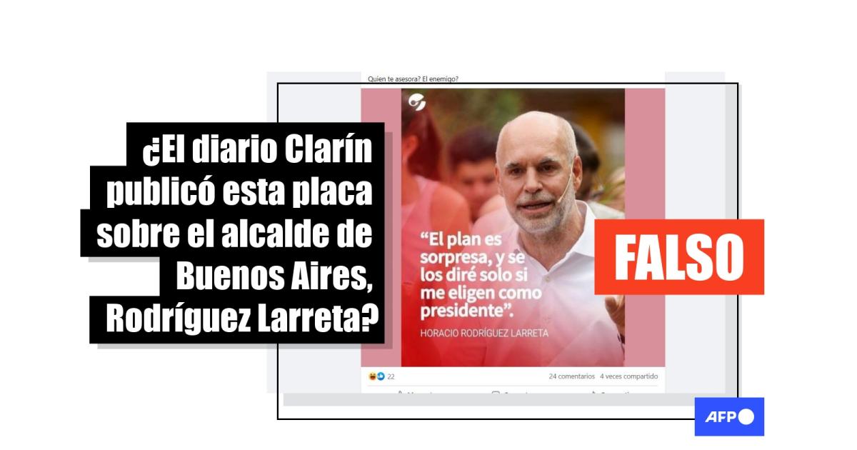 Tras una búsqueda por palabras clave en Twitter, AFP Factual dio con una publicación que cita un artículo de la agencia de noticias pública argentina Télam, que se titula: “Larreta se comprometió a ‘presentar su plan de gobierno apenas asuma’, si gana las elecciones”.