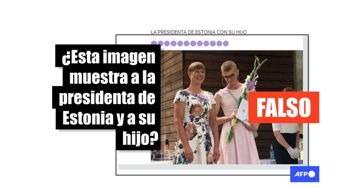 “Presidenta de Estonia y su hijo” dicen usuarios que comparten la imagen en Twitter (1, 2). “La reacción de la verdadera mujer de a lado, lo dice todo.. Muy guapa por cierto.,!!”, señala una publicación en Facebook.