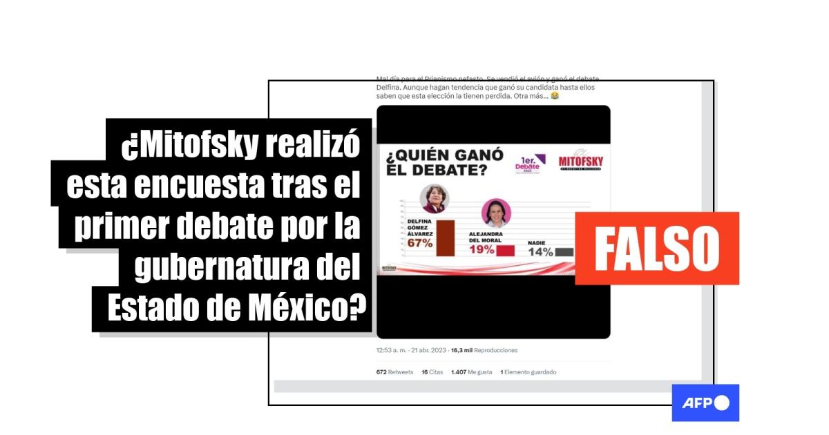 Sin embargo, la imagen de la supuesta consulta realizada por la empresa Mitofsky sobre la ganadora del debate que viralizó en redes sociales es apócrifa.