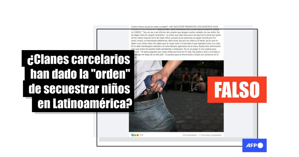 Tras su aparición en 2015, una cadena sobre una supuesta “orden de clanes carcelarios” para robar niños ha circulado en redes sociales y sitios web en al menos 12 países latinoamericanos. El texto ha sido desmentido por distintas autoridades nacionales y no hay registro en la prensa de una amenaza por “olas” de secuestros infantiles. Sin embargo, en abril de 2023 el texto resurgió en cuentas de Venezuela, Perú, Chile, Panamá, Costa Rica, Ecuador y Argentina, preocupando a padres y cuidadores.