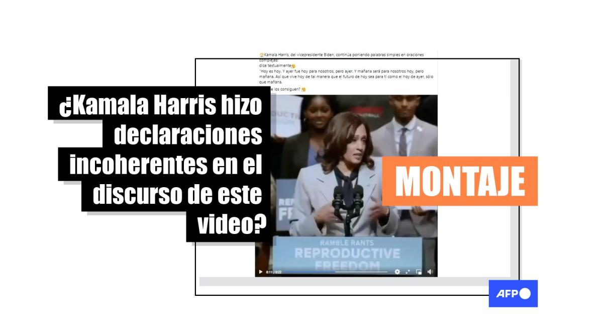 En el video viralizado se escucha una voz femenina similar a la de Harris que dice: “Hoy es hoy y ayer fue hoy, ayer. Mañana será hoy, mañana. Así que vive hoy, para que el futuro hoy sea como el pasado hoy, como es mañana”. Sin embargo, la grabación, de 22 segundos, tiene el audio alterado.