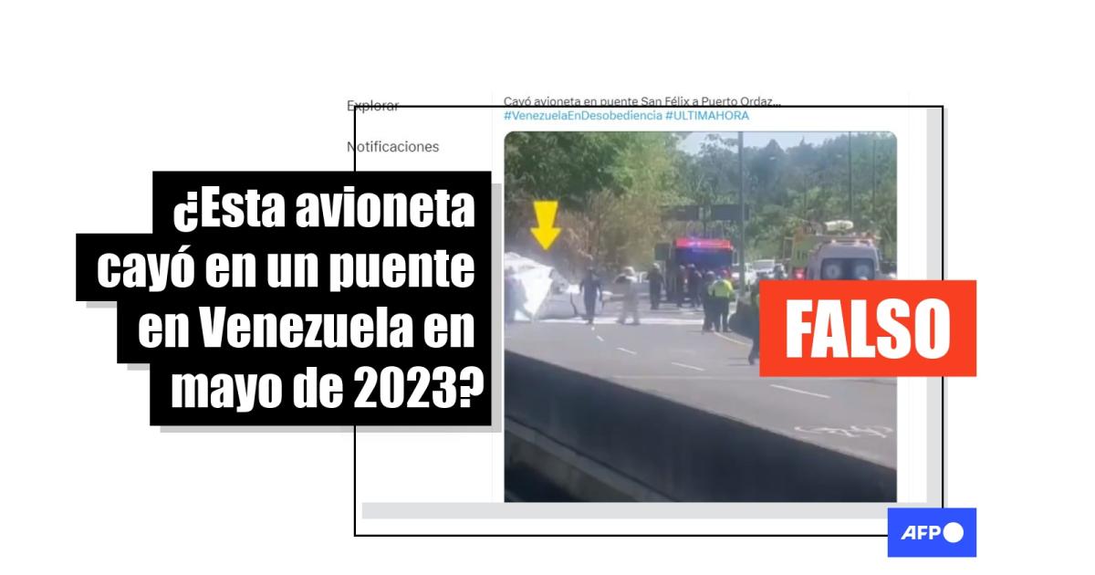 Una avioneta se precipitó a tierra el 1 de mayo de 2023 en la avenida La Amistad de Ciudad de Panamá, reportaron medios locales. Desde ese día, un video del accidente ha sido compartido más de 200 veces en redes sociales con mensajes que aseguran erróneamente que sucedió en Venezuela, entre las comunidades de San Félix y Puerto Ordaz, en Ciudad Guayana (este). Las autoridades panameñas validaron la grabación como correspondiente al descenso de la aeronave en un puente de la capital.