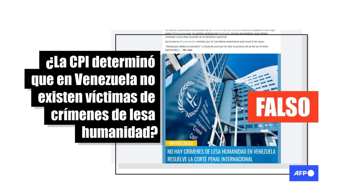 En un correo electrónico enviado a la AFP el 10 de mayo de 2023, la oficina de prensa de la CPI aclaró que el informe de la Sala de Cuestiones Preliminares I “no se pronunció sobre la existencia o no de víctimas de crímenes de lesa humanidad”. La Sala se limitó a indicar, según sus portavoces, que ya cuenta con toda la información que necesitaba para decidir sobre si el fiscal debe continuar la investigación del caso Venezuela I.