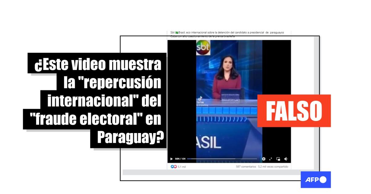 La secuencia muestra a dos presentadores de la cadena brasileña SBT News que supuestamente abordan la situación en Paraguay. En portugués, señalan que “el candidato colorado del narcotraficante Horacio Cartes ganó con fraude las elecciones” y que Cubas “fue arrestado por denunciar fraude electoral cuando era el candidato más querido por todos los paraguayos”.