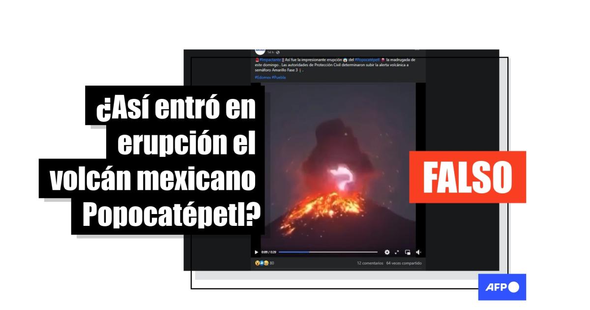“Este es el momento en que hace erupción el Popocatépetl la madrugada de este domingo y motivó el cambio de Alerta Volcánica a Amarillo Fase 3”, afirman publicaciones en Facebook (1, 2) acompañadas de un video de menos de 30 segundos en el que se observa la erupción de un volcán, seguida de caída de lava y una columna de humo negro atravesada por rayos.