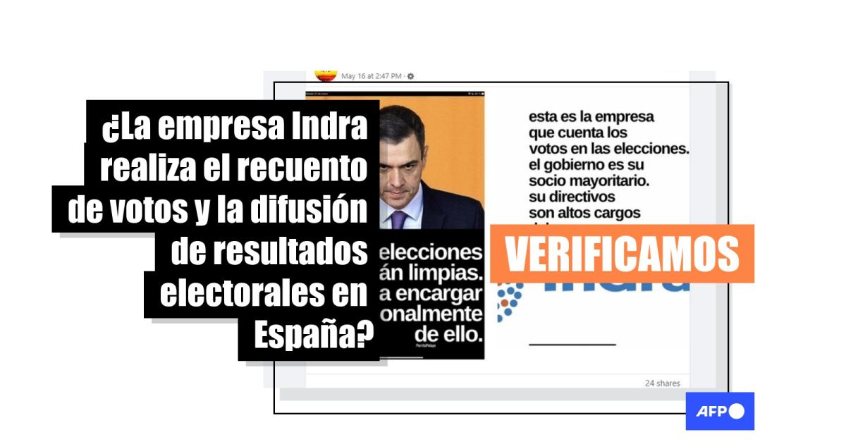 El politólogo español Toni Rodón contestó el 24 de mayo de 2023 a la consulta de AFP Factual: “Indra ganó un concurso público y se dedica ahora a esta cuestiones, es decir, a gestionar, coordinar y transmitir la información de los datos electorales”.