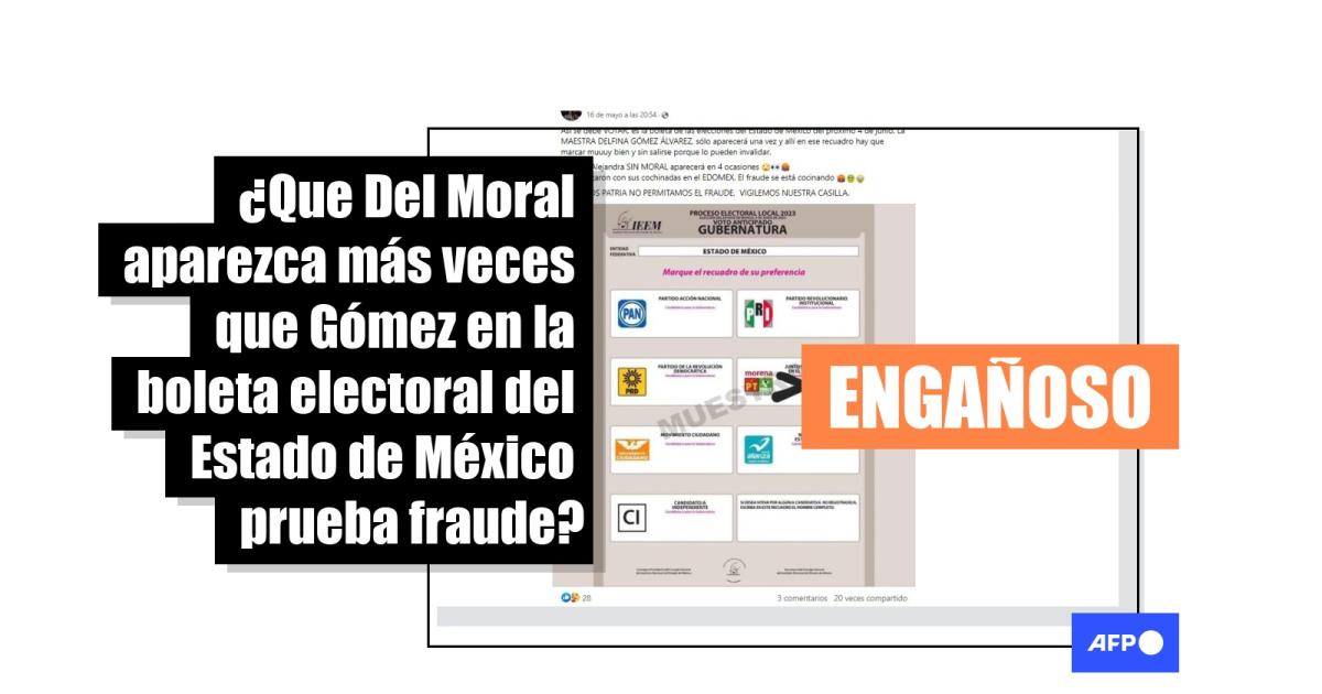 Los comicios en el Estado de México, la entidad con más votantes en ese país, se realizarán el 4 de junio de 2023 y, aunque la boleta compartida en las publicaciones coincide con la que será utilizada ese día, la cantidad de veces que aparecen los nombres de las candidatas no es indicio de fraude.