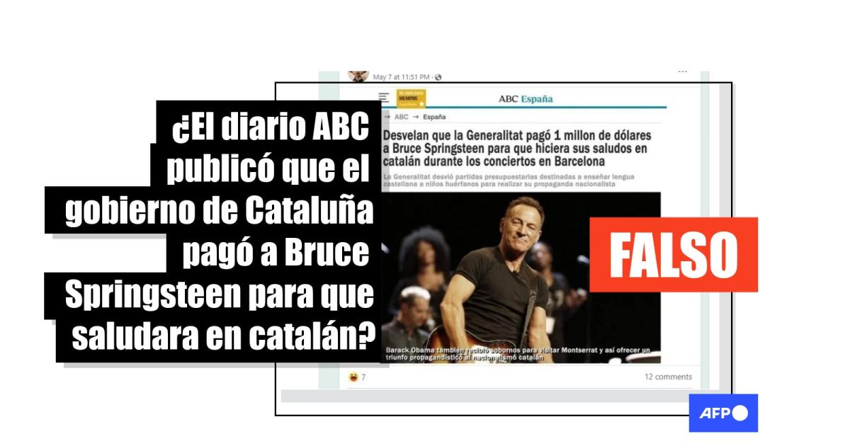 Sin embargo, en una búsqueda por las palabras clave “Generalitat + pagó + Springsteen + catalán”, AFP Factual no encontró ninguna información similar a la que, según los usuarios, publicó ABC, ni en este periódico ni en otros medios españoles.