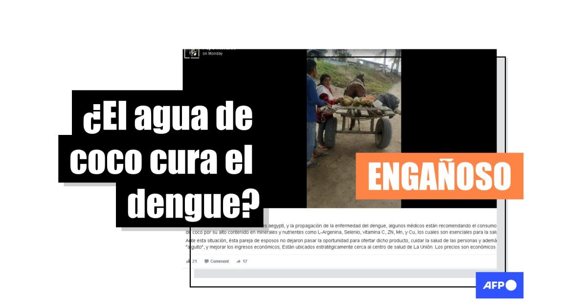 Una opinión similar manifestó a AFP Factual Augusto Tarazona, médico infectólogo y exviceministro de Salud de Perú, sobre la ingesta de agua de coco por parte de pacientes con dengue: “es una forma de prevenir un empeoramiento, pero el agua de coco por sí misma, como si fuera el tratamiento, no es una cura”. “El hecho es que ayuda a hidratar y eso ayuda a que no empeore” el paciente con la enfermedad, completó.