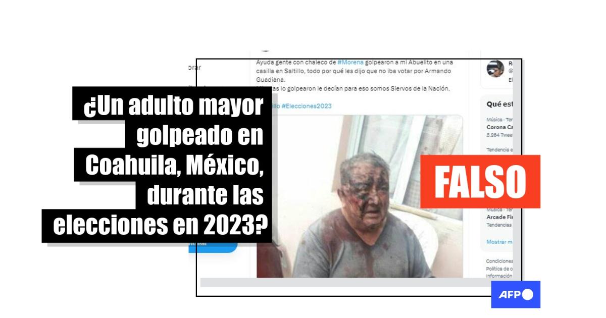 Foto de un adulto mayor golpeado fue tomada en Argentina, en 2021, no en Coahuila, México, en 2023