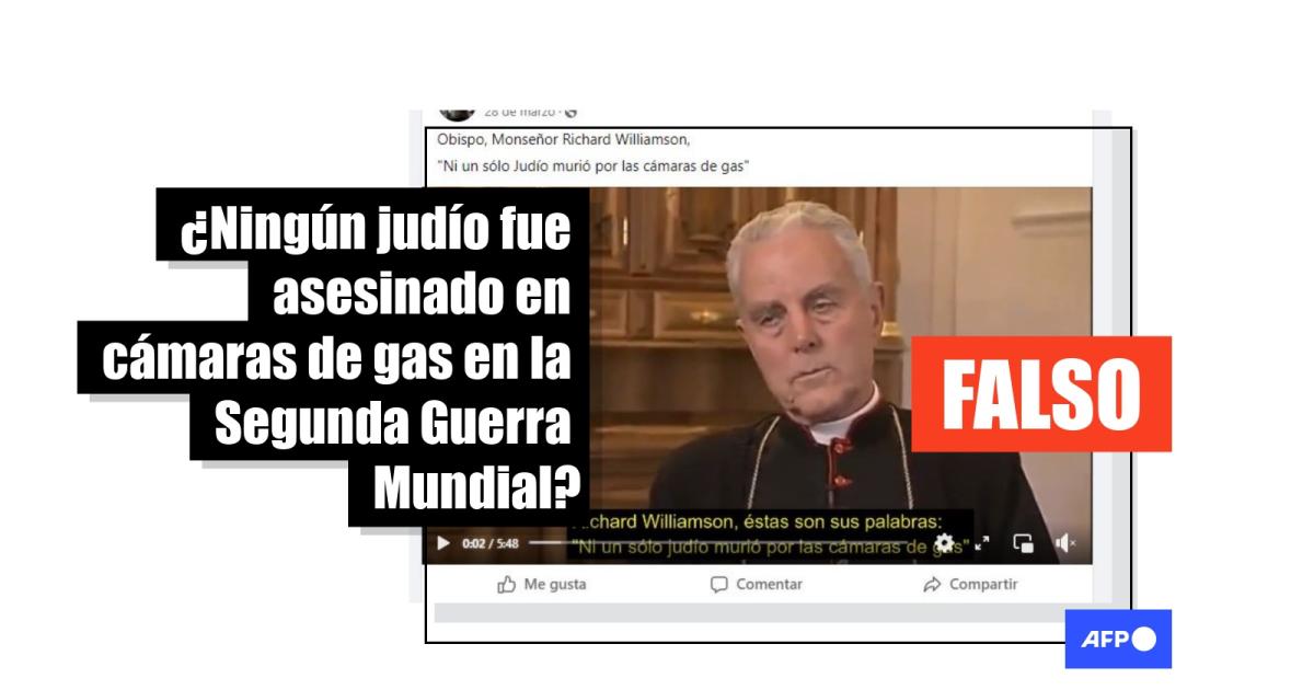 “Obispo, Monseñor Richard Williamson. Ningún solo judío murió por las cámaras de gas”, se lee en una publicación en Twitter que comparte un video con los dichos del obispo. La grabación también fue compartida en Facebook (1, 2) y Telegram.