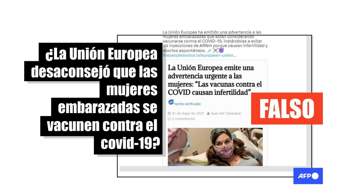 La Agencia Europea de Medicamentos dijo a la AFP el 2 de junio de 2023 que “las afirmaciones que circulan en internet de que la EMA aconseja a las mujeres embarazadas que no reciban vacunas contra el covid-19 porque 'provocarían infertilidad' son falsas”.
