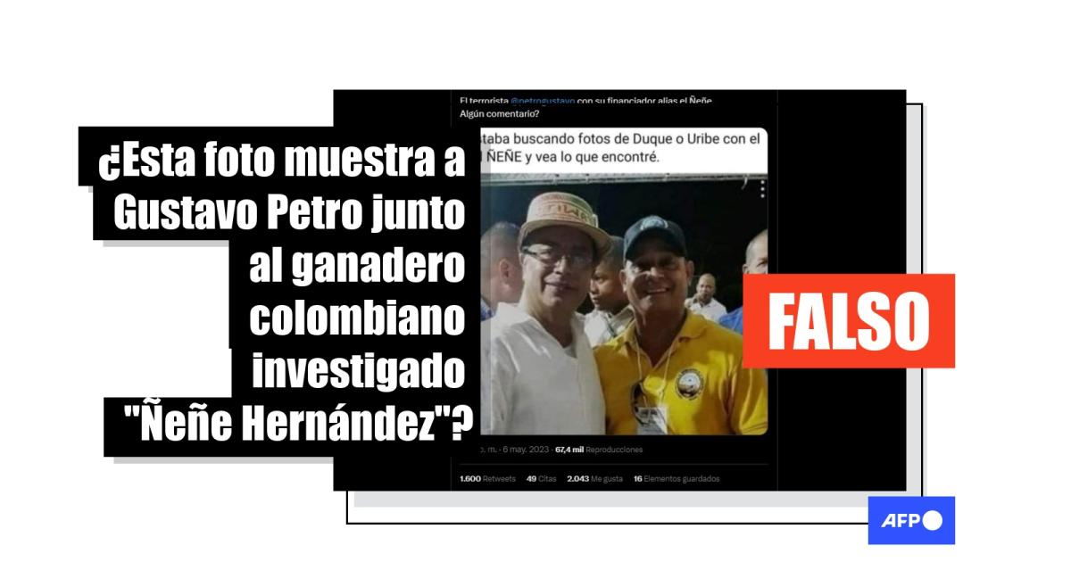En la foto viral, que la AFP ya había visto circular en la campaña presidencial de 2022 tras la que Petro logró la presidencia, el político aparece con una camisa blanca y un sombrero de tejido artesanal. El hombre a su lado lleva una camiseta amarilla y una gorra azul.
