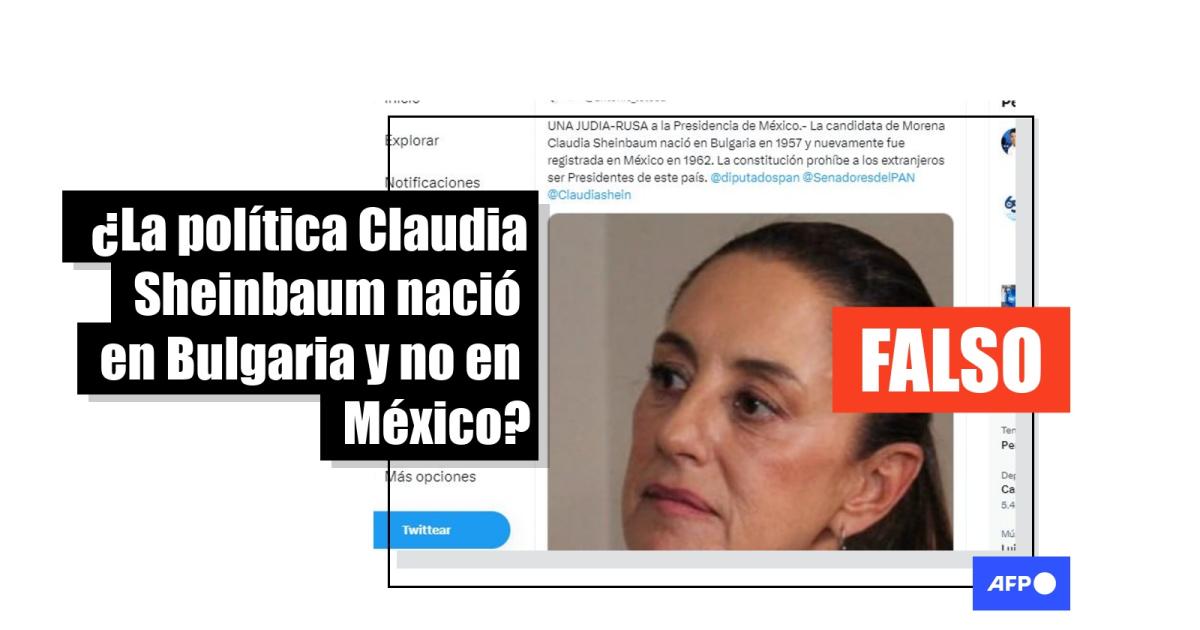 “La candidata de Morena para la próxima presidencia de México, Claudia Sheinbaum nació en Bulgaria en 1957 y nuevamente fue registrada en México en 1962”, dicen publicaciones en Facebook (1, 2) y Twitter (1, 2) difundidas más de 3.000 veces.