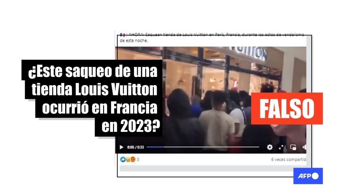 “ | AHORA: Saquean tienda de Louis Vuitton en París, Francia, durante los actos de vandalismo de esta noche.”, señalan entradas en Facebook (1, 2), TikTok y Twitter que difunden la secuencia.