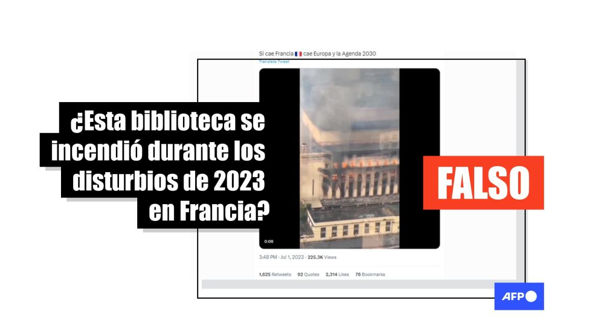 Ese edificio sufrió un ataque que afectó su fachada el 29 de junio de 2023, pero las imágenes viralizadas en redes no corresponden a este caso. La biblioteca abrió nuevamente sus puertas al público el 4 de julio pasado.