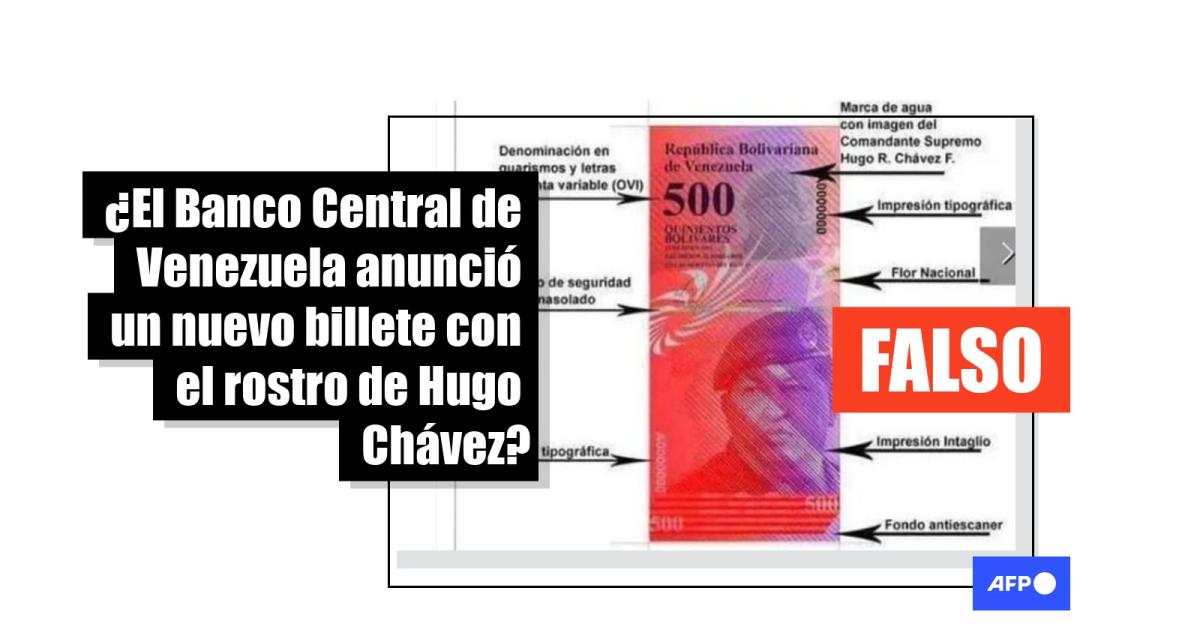 El Banco Central de Venezuela (BCV) no ha anunciado, hasta junio de 2023, el lanzamiento de un billete conmemorativo en homenaje al expresidente Hugo Chávez (1999-2013). Sin embargo, en redes sociales se ha compartido más de 500 veces un supuesto aviso del emisor presentando la nueva especie. En realidad es una imagen que circula en internet desde 2013, pero no cuenta con respaldo oficial. Medios locales desmintieron ese año su autenticidad.