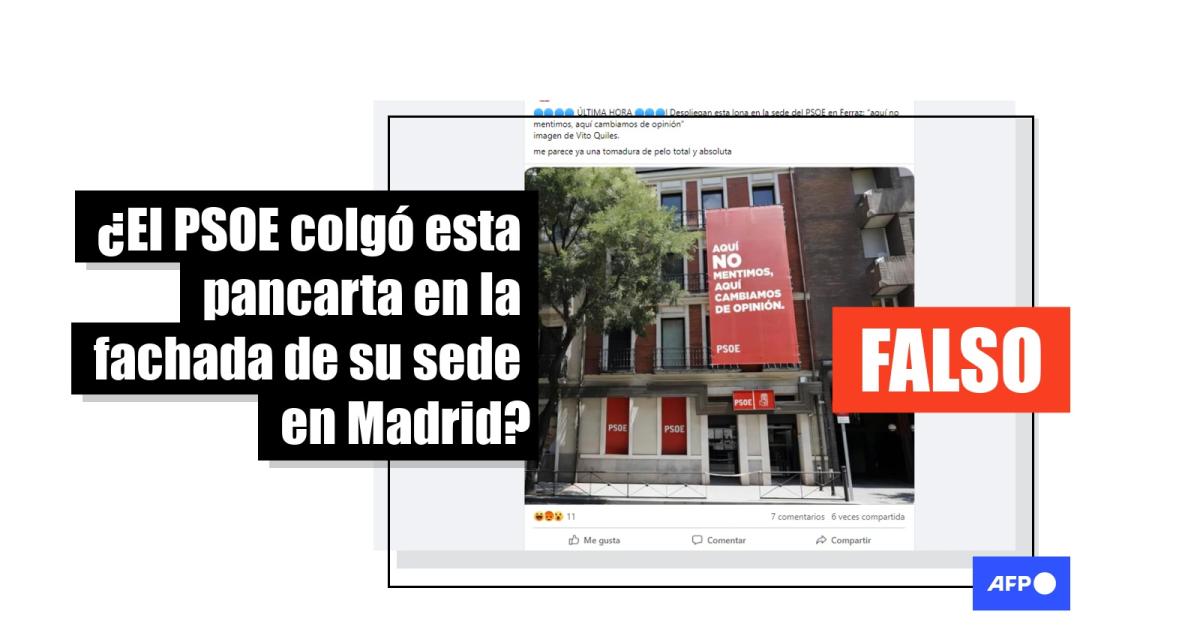 Consultado por AFP Factual, el gabinete de prensa del partido socialista dijo que “esa foto es un montaje” y que “nunca ha existido esa lona”.