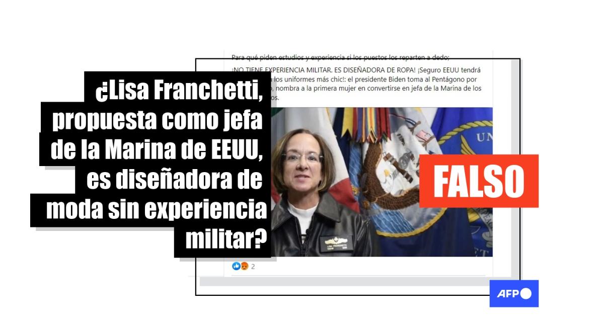 “¡Y NO TIENE EXPERIENCIA MILITAR. ES DISEÑADORA DE ROPA! ¡Seguro EEUU tendrá La marina con los uniformes más chulos! Esto acaba de llegar: el presidente Biden toma al Pentágono por desprevenido, nombra a la primera mujer en convertirse en jefa de la Marina de los Estados Unidos”, señalan entradas en Facebook (1, 2) y Twitter, ahora llamado X.