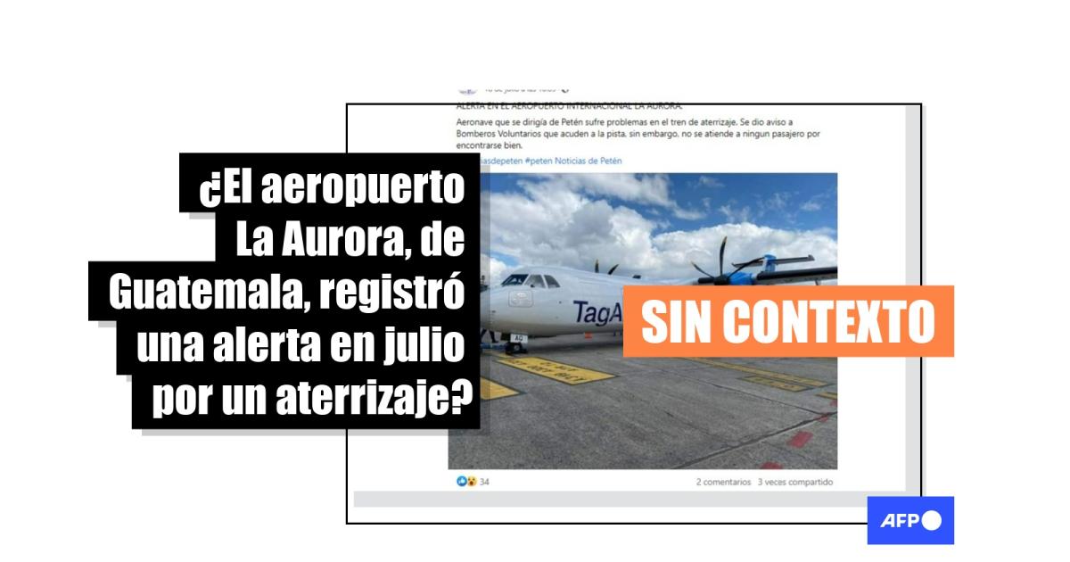 “ALERTA EN EL AEROPUERTO INTERNACIONAL LA AURORA, GUATEMALA. Aeronave que se dirigía de Petén, con problemas en el tren de aterrizaje. Bomberos Voluntarios, acuden a la pista para atender la emergencia, no se atiende a ningún pasajero por encontrarse bien”, afirman las publicaciones en Facebook (1, 2), que incluyen la foto de un avión estacionado de la aerolínea TAG Airlines.