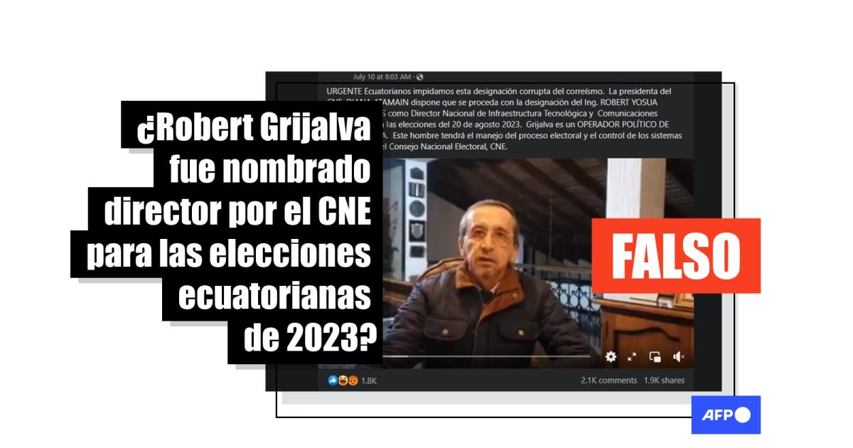 AFP Factual no encontró registros en medios de comunicación o en el CNE en 2023 sobre un nuevo nombramiento para esa dirección o de Grijalva en ese departamento electoral.