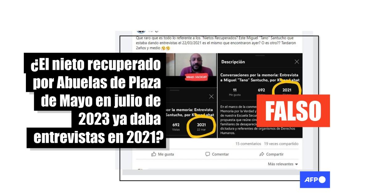 “Que raro que es todo lo referente a los ‘Nietos Recuperados? Este Miguel ‘Tano’ Santucho que estaba dando entrevistas el 22/03/2021 es el mismo que encontraron ayer? O es otro?? Tardaron 2 años y medio”, se lee en entradas en Facebook (1, 2), Twitter, ahora llamado X (1, 2, 3) e Instagram, que comparten la captura de pantalla de uno o varios videos.