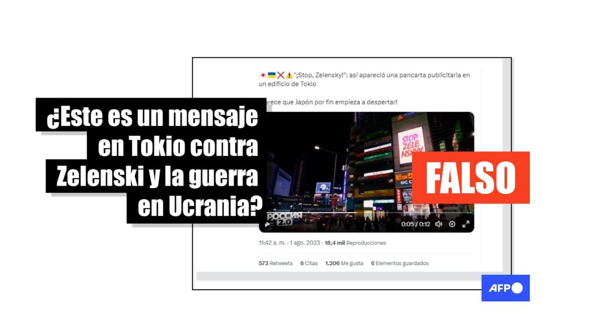 El video que muestra un cartel digital en Tokio contra Zelenski está alterado