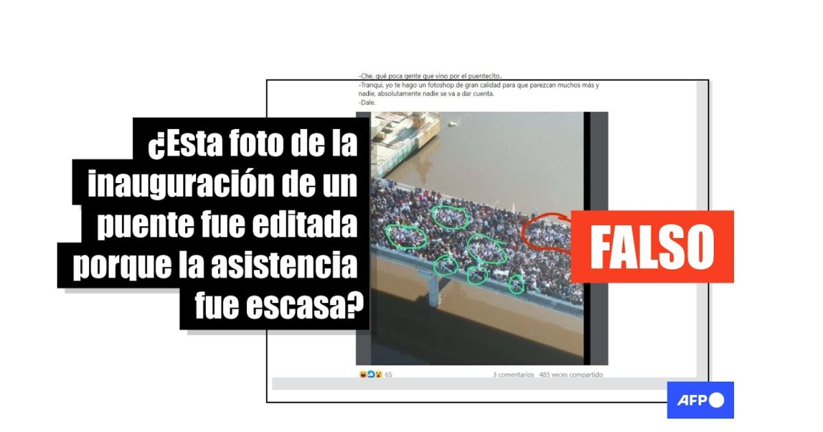 Foto manipulada difundida en redes relativiza la asistencia a la inauguración de puente en Uruguay