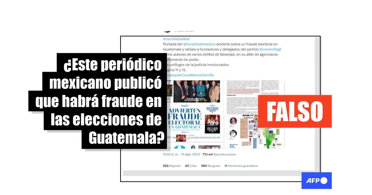 “#SemillaDelMal Portada del @heraldodemexico advierte sobre un fraude electoral en Guatemala y señala a fundadores y delegados del partido @msemillagt como autores de varios delitos de falsedad, en su afán de agenciarse ilícitamente de poder. Los prófugos de la justicia involucrados. Página 11 y 12”, afirman las publicaciones en Facebook (1, 2) y X, antes conocida como Twitter.