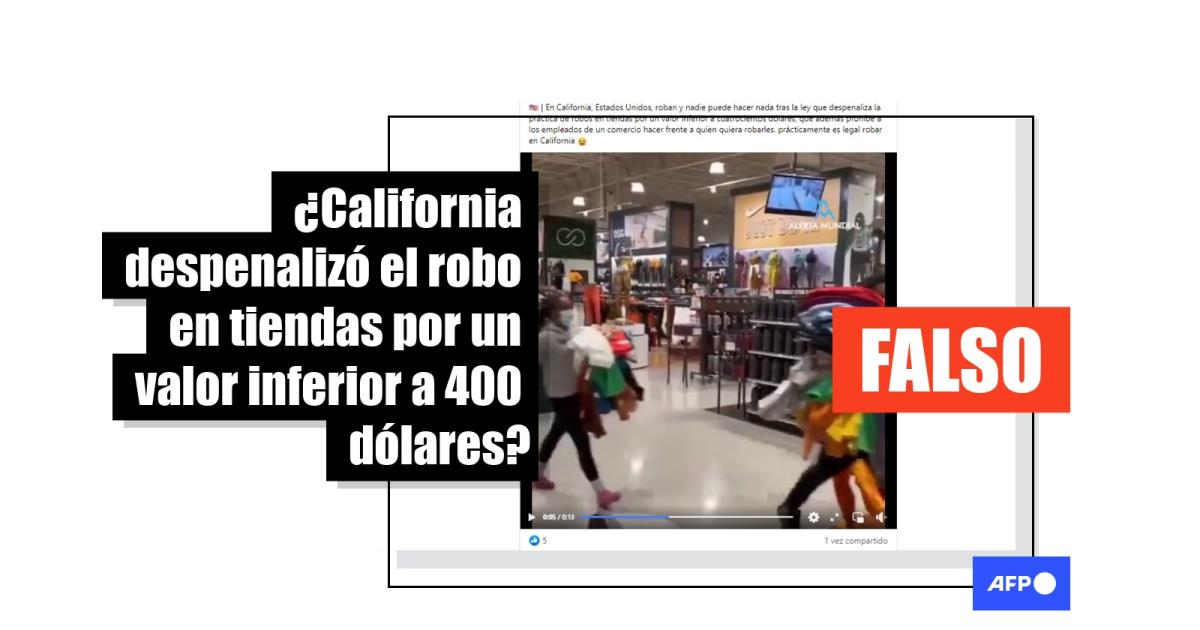 Robert Weisberg, codirector del Centro de Justicia Penal de la Universidad de Stanford, señaló a la AFP que “el robo [de menos de 400 dólares] no ha sido despenalizado” en California. “Simplemente no es un delito grave en la ley estadounidense, es un delito menor”, añadió en una llamada telefónica el 16 de agosto de 2023.