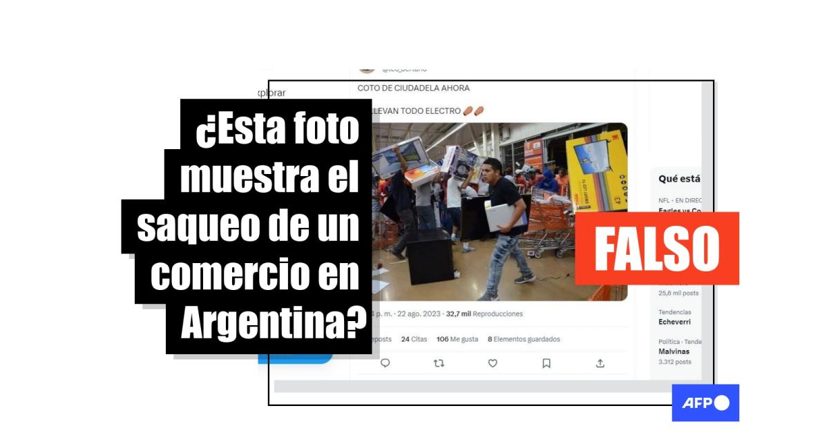 La imagen circula en el marco de los saqueos registrados en tiendas y supermercados en agosto de 2023 en las provincias argentinas de Mendoza, Córdoba, Neuquén, Río Negro y Buenos Aires. En las publicaciones se menciona que el vandalizado es un comercio llamado Coto ubicado en la localidad bonaerense de Ciudadela.