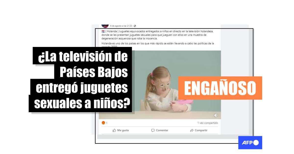 “Un programa de televisión holandés reparte juguetes sexuales a niños en la televisión. Los derechistas locales están indignados y creen que la degeneración en los Países Bajos ya no se puede detener”, dice un usuario en redes sociales junto a un vídeo de 30 segundos en el que se ve a varias niñas enmascaradas desempaquetar vibradores y decir para qué creen que sirven esos objetos.