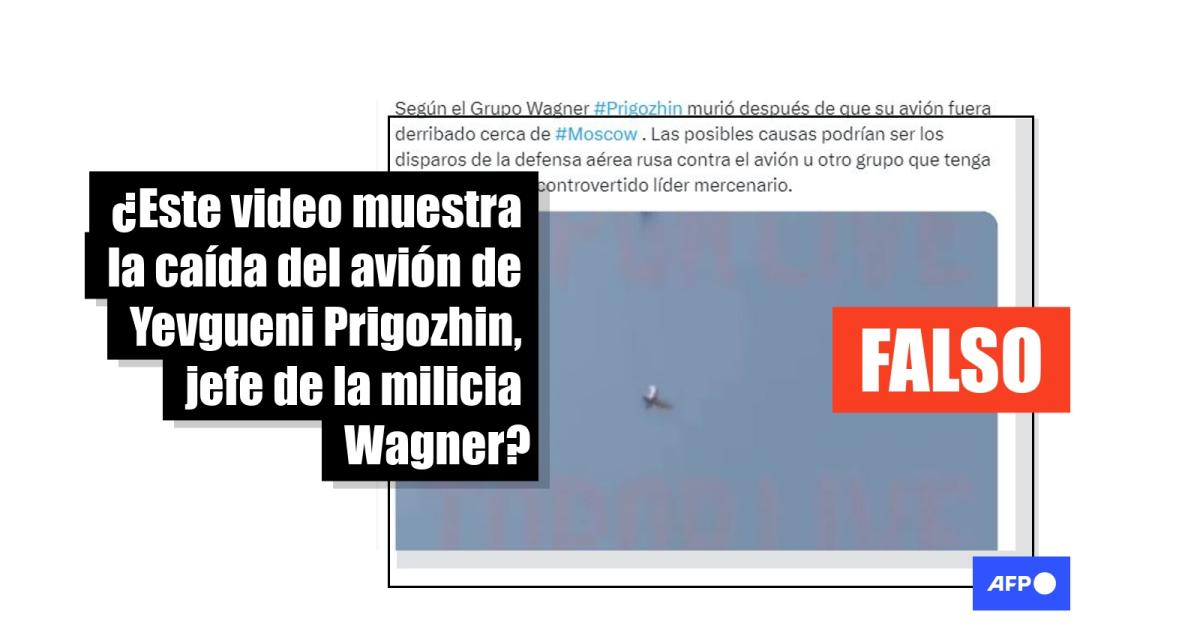 “Un nuevo video, confirmaría, que el avión de Prigozhin fue derribado por los Sistemas Antiaéreos Rusos”, asegura una de las publicaciones viralizadas en Facebook (1, 2), Telegram y X, antes llamada Twitter. Entradas similares han circulado también en inglés.